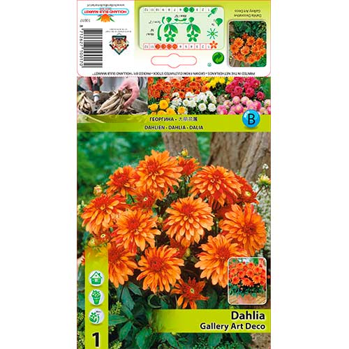 Далия Gallery Art Deco - това е красив и гиздав сорт, който ще украси всяка градина. Подходящ за цветни лехи, моно засаждания и създаване на групови композиции. Цъфти ярко, по оригинален начин, непретенциозен при отглеждане. Расте без пресаждане и разделяне 3-5 години. За засаждане изберете парцели с рохкава, дишаща почва, където не се натрупва влага.