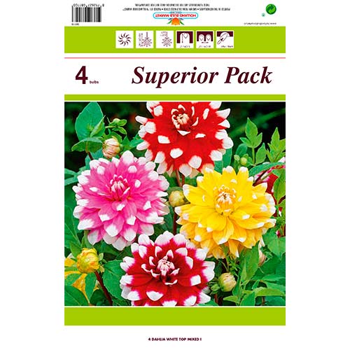 Далия White Top Mixed са истинска украса на градината! Купете луковици и се насладете на необикновения цъфтеж и яркостта на цветята.