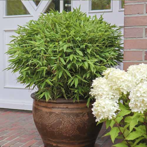 Храстовидният бамбук Moontears е екзотично растение за европейските градини за топиари и ниски живи плетове. Растението е с компактен, гъст хабитус, с височина до 1 м и ширина до 80 см. Растението открива нови възможности за оригинална декорация на градината. Оформете храста в топка, куб, пирамида, нека градината ви изглежда спретната и елегантна. А шумолящите от вятъра листа ще внесат мир и спокойствие в градината ви.