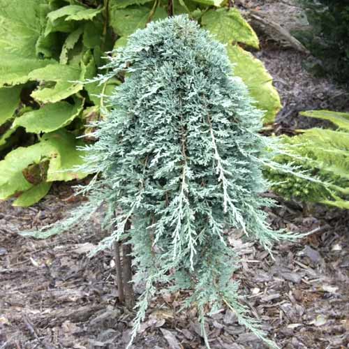 Icee Blue пълзяща хвойна е прекрасен храст със сини и сребристи стъбла. Бавно растящ сорт, той достига до 15 см височина и до 2 м диаметър. Това е много атрактивен сорт, който се препоръчва за цветови комбинации с по-високи иглолистни дървета в светлозелено или жълто. Също така е отлично почвопокривно растение, което се използва за засаждане на големи площи самостоятелно или в комбинация с други растения. Нещо повече, той е идеален за алпинеуми и за оформяне на склонове и стени, а стъблата му изглеждат изключително ефектно, сякаш се спускат по стените.