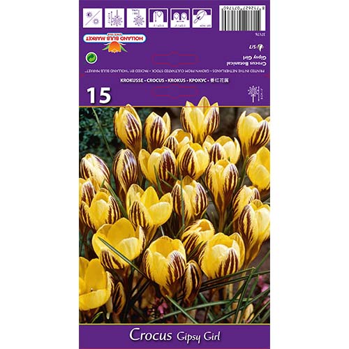 Циганското момиче крокус е най-красивият и добре познат предвестник на пролетта. Crocus Gipsy Girl се характеризира с големи цветове с жълти венчелистчета с кафяви ивици отвън. Растенията не са високи, достигат само 5-10 см височина, но благодарение на наситените си и ярки цветове се виждат отдалеч. При слънчево време ароматните цветове се отварят и са посещавани от пчели и щурци. Това непретенциозно многогодишно растение се засажда на групи покрай пътеки, в алпинеуми и на тревни площи.
