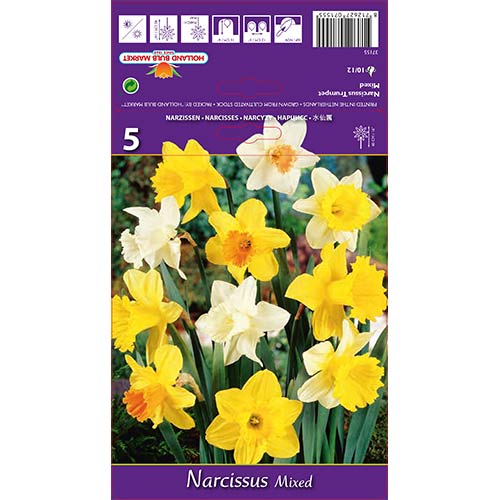 Нарцис с голяма корона, микс - луксозен микс от високи сортове с големи, ароматни цветове и дълги стъбла. Всички едрокоронни сортове са идеални за градинска декорация и рязан цвят, устойчиви са на замръзване и се размножават бързо, за да образуват гъсти китки от подобни растения. Няколко лехи с тези цветя могат да преобразят всяка градина през пролетта.
