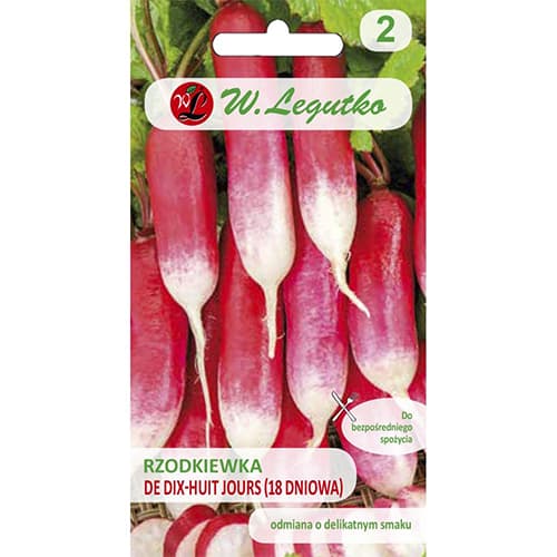 Репичка De dix-huit jours (18 дни) - продуктивен сорт, който ще ви зарадва с голяма реколта и отличен вкус. При правилно отглеждане той преизпълва посочените сортови характеристики и буквално залива с реколта. Изисква грижи: има нужда от поливане, торене, отстраняване на плевели и разрохкване на почвата.