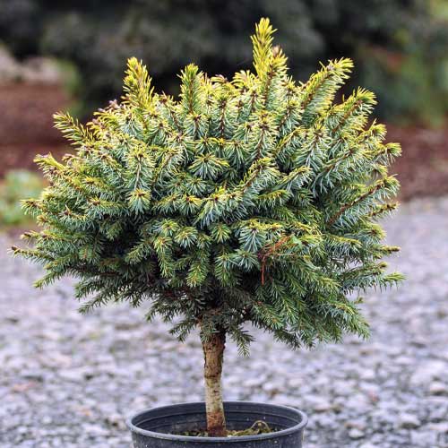 Смърчът Peve Tijn е прекрасен сорт джудже, който привлича погледите с цвета си. Този бавно растящ сорт достига височина 60 cm и ширина 70 cm. Сферичната форма на растението изглежда много спретната и стилна. Хвойната е оцветена в зелено-жълто отгоре и сребристо-синьо отдолу - комбинация, която изглежда много забележителна и оригинална. Този сорт често се засажда в алпинеуми, в компанията на други ниски иглолистни дървета. Компактният му хабитус позволява да бъде засаждан дори на малки пространства или в контейнери.
