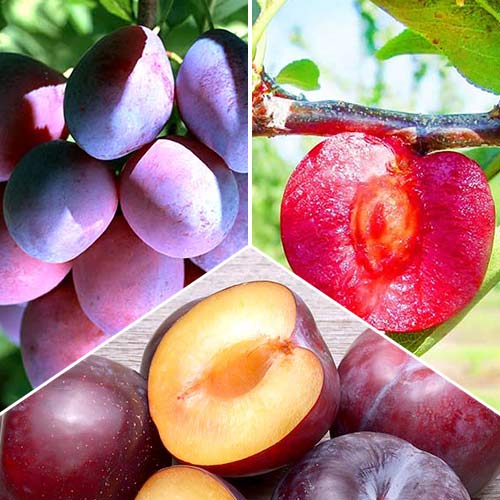 Супер предложения! Комплект сливи, 3 разсада - много плодороден сорт, който може да засенчи много други с вкуса на плодовете си. Реколтата заслужава похвала! Всяко дърво щедро ще надари собственика на градината. Плодовете са големи, равни по размер с невероятен аромат и привлекателен търговски вид. Плододава редовно, всяка година!