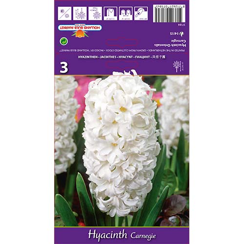 Зюмбюлът Карнеги е една от редките разновидности на ориенталския зюмбюл. Голямото съцветие от снежнобели звездовидни цветове с приятен аромат очарова със скромната си, но изненадващо трогателна красота. Изглежда чудесно в групови насаждения с ярки сортове и други иглики. По време на цъфтеж наподобява снежнобели облаци или морска пяна и предизвиква усещане за спокойствие. Сортът е идеален за цъфтеж на закрито, като е напълно непретенциозен и не изисква поддръжка.